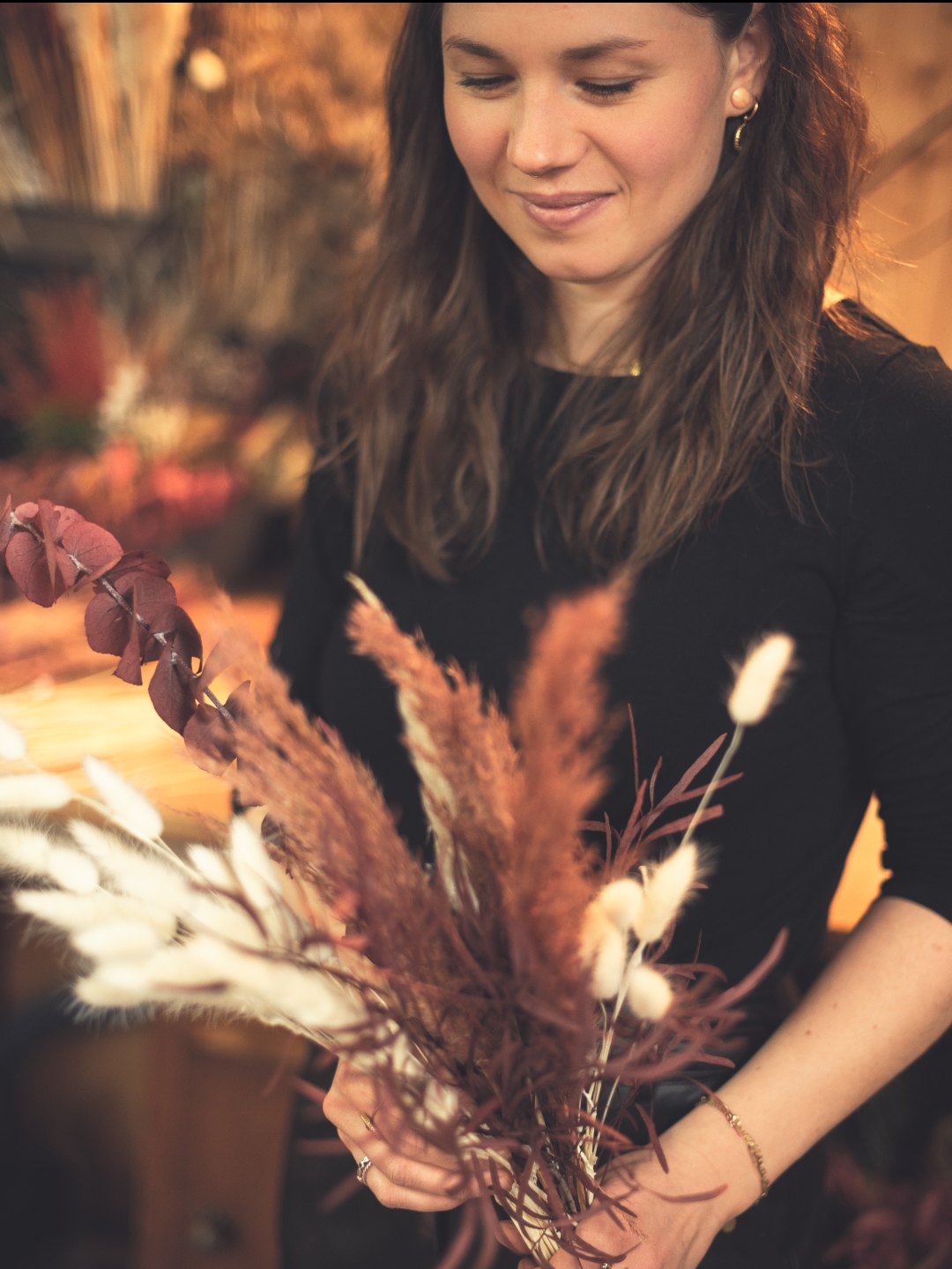 Spécialisée dans les créations en fleurs séchées, elle imagine des compositions élégantes et intemporelles inspirées par la nature. Elle réalise également des décorations florales sur mesure en fleurs fraîches pour mariages et événements uniques.